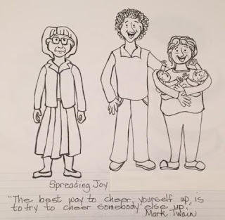 There are times when blatant attempts to cheer someone up are not only poorly received, but taken as judgmental and offensive. The key to cheering someone else up is to know them well enough to appeal to something he/she particularly likes, make it short and sweet, and don't expect an immediate positive response or 'thank you!' It's also important to remember that once may not be enough. There's nothing like a quick phone call or text message to just say, "Hi - thinking of you!" If you can add a something specific, all the better - "Hi - just saw one of those crazy hand-painted mini-vans and remembered the one we saw on our trip to George's graduation - hope all is well with you!"