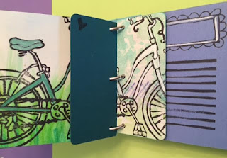 Although it seems like I was working toward a big "finale!" I am disappointed to share that I didn't follow through to the end of the minibook and do that. The bike continues to move further to the right on the pages and the frame becomes completely blue, but......